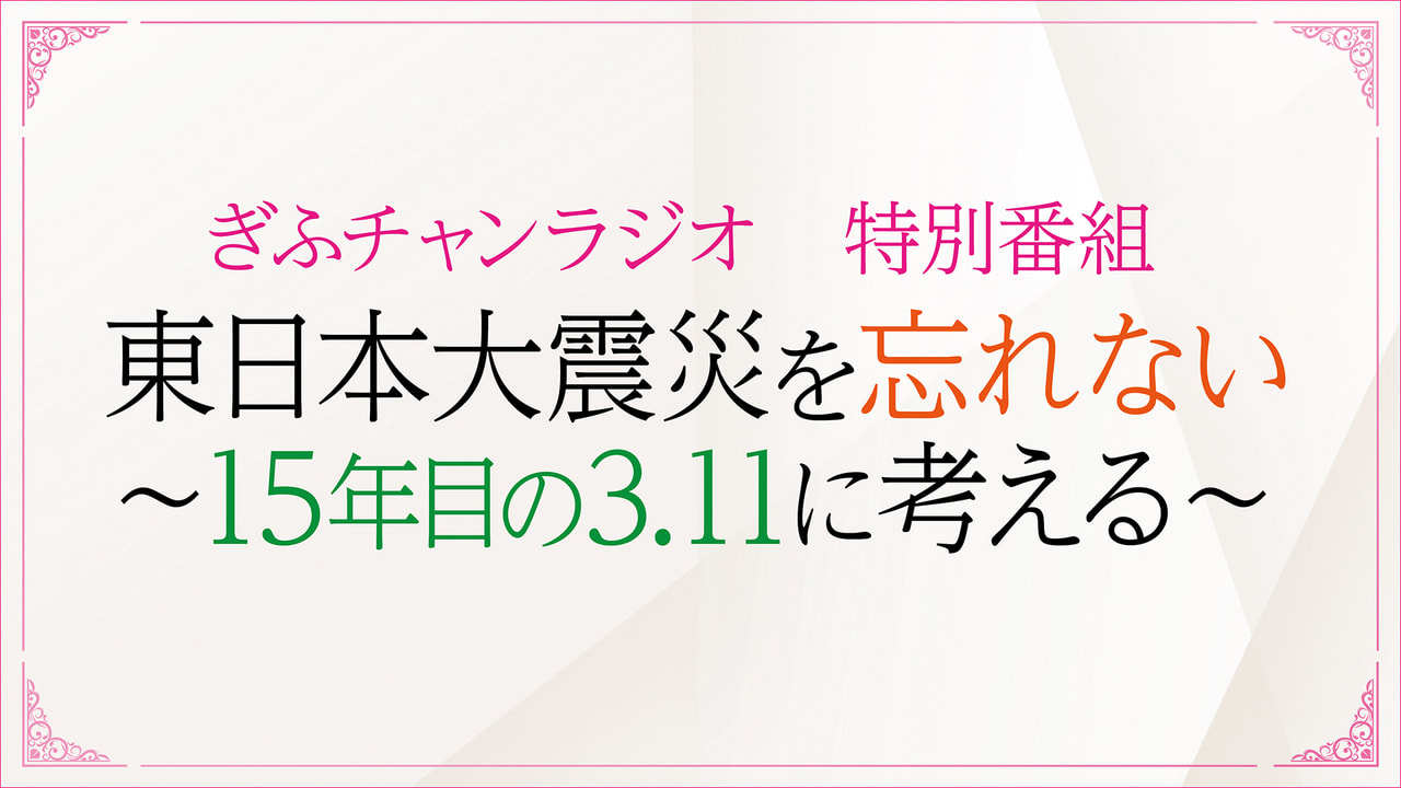 【テレビ:今夜7時】きょう行われた岐阜県公立高等学校入学者選抜第一次選抜。試験問題を教科別に解説します。 【テレビ:今夜7時】きょう行われた岐阜県公立高等学校入学者選抜第一次選抜。試験問題を教科別に解説します。 ニッポン放送制作のWBC日本戦を全国30局で放送 ニッポン放送をキーステーションとして全国計30のラジオ局で生中継 ニッポン放送制作のWBC日本戦を全国30局で放送 ニッポン放送をキーステーションとして全国計30のラジオ局で生中継 【ラジオ】3月11日(水)ひる1時放送 東日本大震災から15年。震災の被災体験を風化させず、今後に生かすべきことを15年目の節目の日に考える。 【ラジオ】3月11日(水)ひる1時放送 東日本大震災から15年。震災の被災体験を風化させず、今後に生かすべきことを15年目の… テレビ・データ放送でじゃんけんゲームに挑戦しよう!第4弾は、飛騨牛商品券1万円分 を抽選で5名様にプレゼント!! キャンペーン開催期間は3月1日(日)~31日(火) テレビ・データ放送でじゃんけんゲームに挑戦しよう!第4弾は、飛騨牛商品券1万円分 を抽選で5名様にプレゼント!! キャンペー… 【ラジオ】3月29日(日)ひる1時30分~2時25分 【3月のゲスト】石田 仁(大垣市長)、5GAP(吉本興業)、長澤明日香(シンガソングライター)、澤田大樹(俳優)、やながせゆっこ 【ラジオ】3月29日(日)ひる1時30分~2時25分 【3月のゲスト】石田 仁(大垣市長)、5GAP(吉本興業)、長澤明日香… 社会福祉事業協賛 ワールド・ドリームサーカス大垣公演 2026年4月18日(土)~ 7月21日(火)開催 社会福祉事業協賛 ワールド・ドリームサーカス大垣公演 2026年4月18日(土)~ 7月21日(火)開催 【キャンペーン期間】2月24日(火)~3月19日(木) ラジオの魅力と「radiko」の便利さをご紹介し、ラジオのある豊かな生活をご提案します。くわしくはキャンペーンサイトへ! 【キャンペーン期間】2月24日(火)~3月19日(木) ラジオの魅力と「radiko」の便利さをご紹介し、ラジオのある豊かな… 2026年4月25日(土)開催 ~女性のためのマネーセミナー~\今すぐ知りたい新NISA/「すぐに使えるお金の貯め方と家計節約術」 2026年4月25日(土)開催 ~女性のためのマネーセミナー~\今すぐ知りたい新NISA/「すぐに使えるお金の貯め方と家計節… 【テレビ】毎週抽選で1名様に5000円分のクオカードをQUOカードをプレゼント!応募には番組内で発表されるキーワードが必要です!番組をチェックして、専用応募フォームから応募してください!詳しくはこちら! 【テレビ】毎週抽選で1名様に5000円分のクオカードをQUOカードをプレゼント!応募には番組内で発表されるキーワードが必要で… ニッポン放送からのお知らせ ニッポン放送制作のWBC日本戦を全国30局で放送 ニッポン放送をキーステーションとして全国計30のラジオ局で生中継ニッポン放送が制作・生中継する『2026 ワールドベースボールクラシック 実況中継』は、ぎふチャンラジオでもお聴き頂けます。放送日時など詳しくは、ニッポン放送『2026 ワールドベースボールクラシック 実況中継』ホームページをご覧ください。 新着情報 テレビ 1月 5日(月) テレビ・タイムテーブル 2026年1~3月版はこちらから ラジオ 1月 5日(月) ラジオ・タイムテーブル 2026年1~3月版はこちらから お知らせ12月 6日(金) “あなた”のドキュメンタリー、作りませんか? その他 9月17日(火) タイムテーブルの郵送をご希望の方へ ニュース 光ミュージアムで特別展「刀剣とやまと心」 日本刀や武士道の魅力伝える 岐阜県高山市 3月 4日 12:20 遠山洋子さん新曲「恵那の波濤」がお披露目 岐阜県中津川市出身 恵那市観光協会応援ソング 3月 4日 11:32 携帯電話会社の従業員を名乗る女らからのうその電話 岐阜市の70代女性が約650万円被害 3月 3日 17:22 イラン情勢緊迫化で相談窓口 岐阜県が事業者向けに開設 資金繰りや経営に関する支援へ 3月 3日 16:57 今季の活躍に期待 体調万全 「小瀬鵜飼」の鵜の予防接種 岐阜県関市 3月 3日 15:42 一覧を見る テレビ新着 マーサ21プレゼンツ こころ、動く、出会いを マーサ21で夢を語ろう!【動画募集内容】… めっちゃぎふわかるてれび <2・3月はキーワードプレゼント月間!>… ぎふ県だより 2026年2月27日(金)放送マイナ免許… 煌く岐阜 次回予告2026年3月2日(月) よる1… 一覧を見る ラジオ新着 Music Tune(ミュージック・チューン) きょうのテーマ3月5日(木)のメッセージ… 東日本大震災を忘れない 15年目の3.11に考える 番組概要2011(平成23)年3月11日… きょうもラジオは!? 2時6時 メッセージテーマ3月4日(水)「 行列 … T.W.R presents ゆっこ学園 Tell me tours ~輝光との旅~ 次回予告3月9日 ゲスト:歩ける車椅子タ… 一覧を見る ブログ新着 アンバサダーに就任しました☆ 東 千晴 15周年を迎えた radiko📻️あたな… 和菓子でほっこり♪ 小沢 典子 2月25日(水)の「小沢典子のたっぷりモ… アートで心も明るく💡 東 千晴 名鉄岐阜駅近くにある新岐阜地下道加納高校… 防災について考える 小沢 典子 2月18日(水)の「小沢典子のたっぷりモ… 一覧を見る @gifuchan Tweets by gifuchan