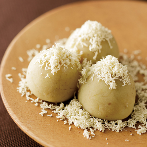 もちもちとした食感のだんご餅を、利平栗の栗きんとんで包み