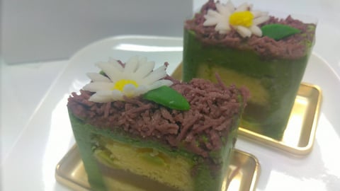 周りは、岐阜市の名産品の枝豆と抹茶を合わせたムースで
