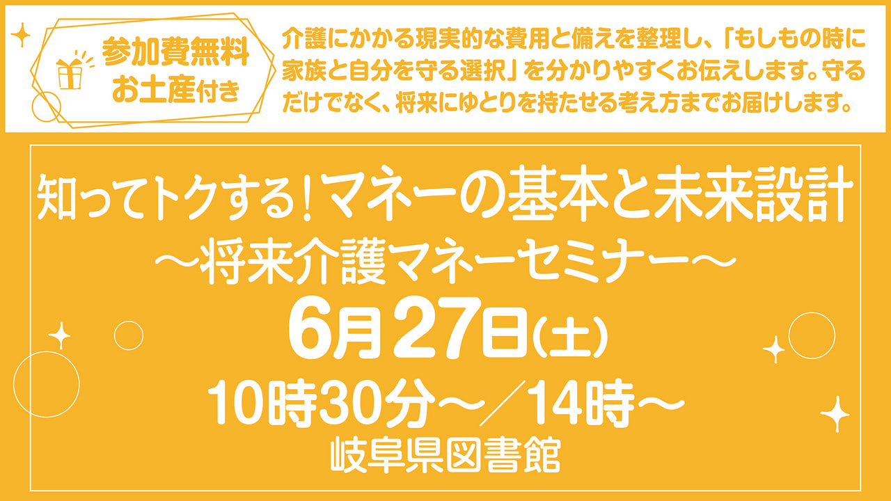 【参加無料!お土産付き♪】知ってトクする!マネーの基本と未来設計~将来介護マネーセミナー~