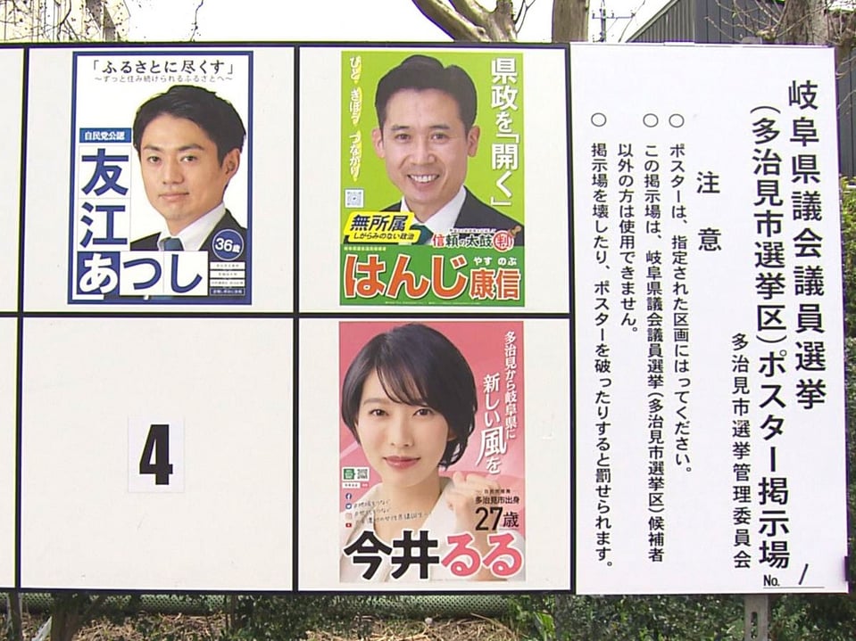 - 岐阜県議会議員選挙告示 多治見市など9選挙区で選挙戦 17選挙区は無投票当選