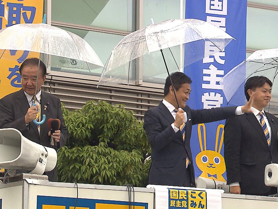 玉木代表は、県選出の仙田晃宏衆院議員らと演説に立ち、高市新総裁に対し、早期の物価高対策を訴えた上で、所得税の「年収の壁」の引き上げと、ガソリン税の暫定税率の廃止を求めました。