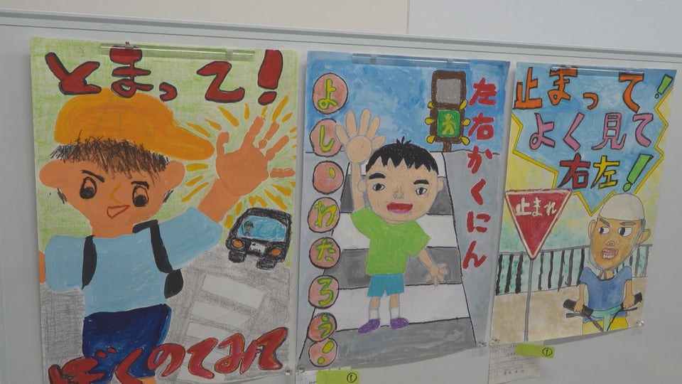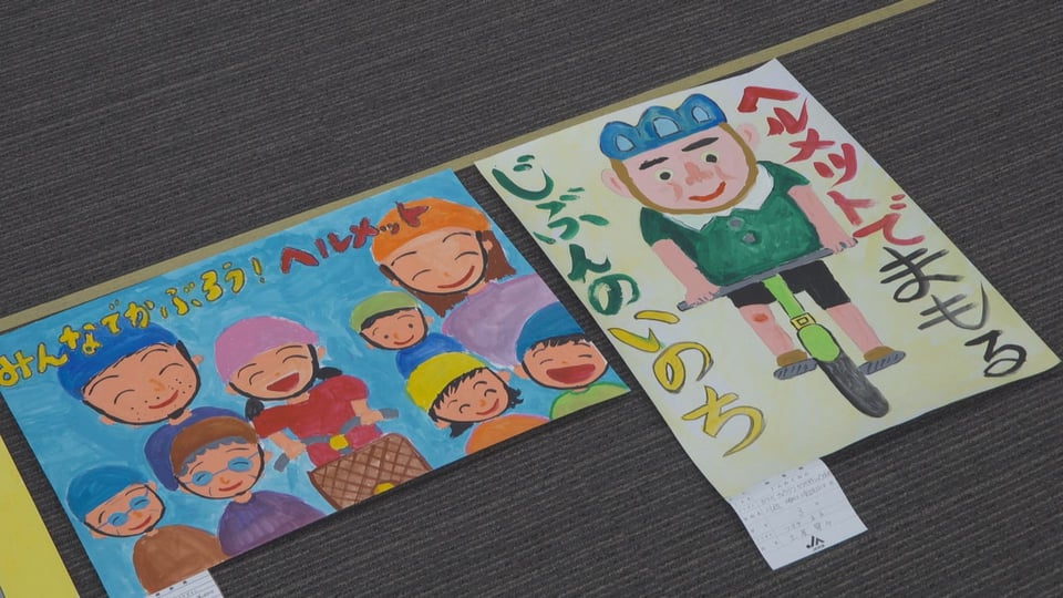 審査会場には、自転車乗車時のヘルメット着用やながらスマホの危険性などを呼びかける小中学生の力作が並び、審査員を務めた県美術館や県教育委員会の関係者らが構図や色彩などの観点で慎重に吟味し、最高賞の岐阜県知事賞をはじめ入賞作品を選びました。
