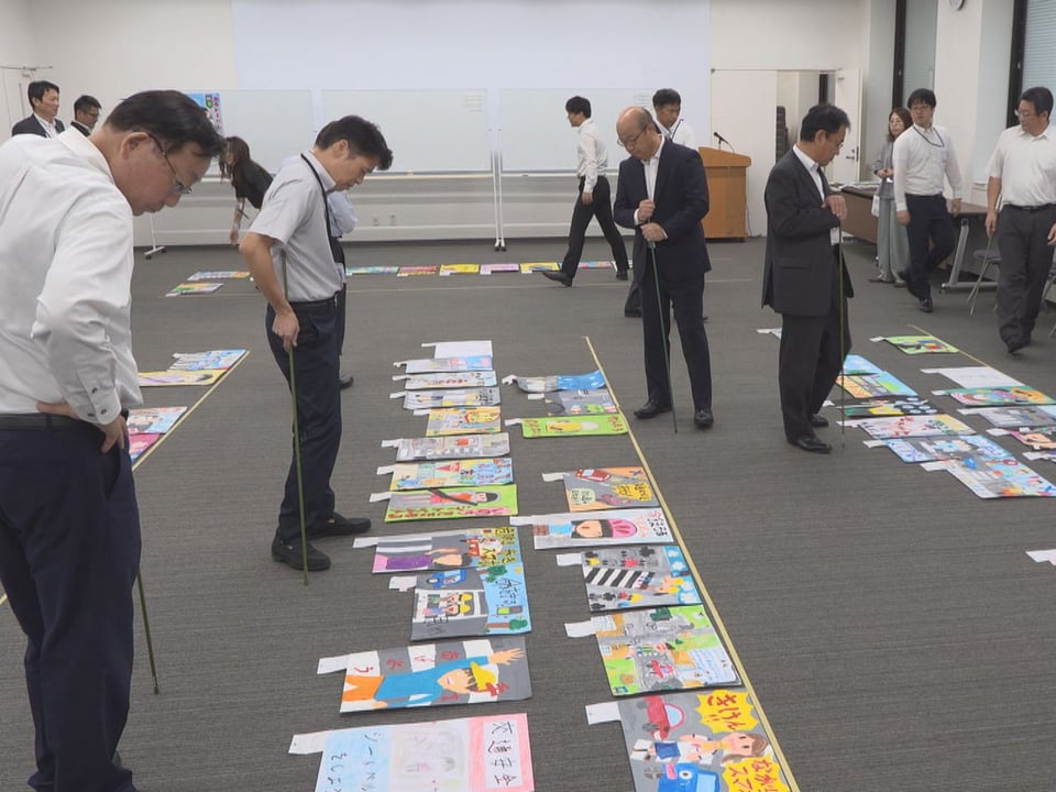 コンクールには県内の小中学校から1352点の応募があり、その中から絞り込まれた514点が審査されました。