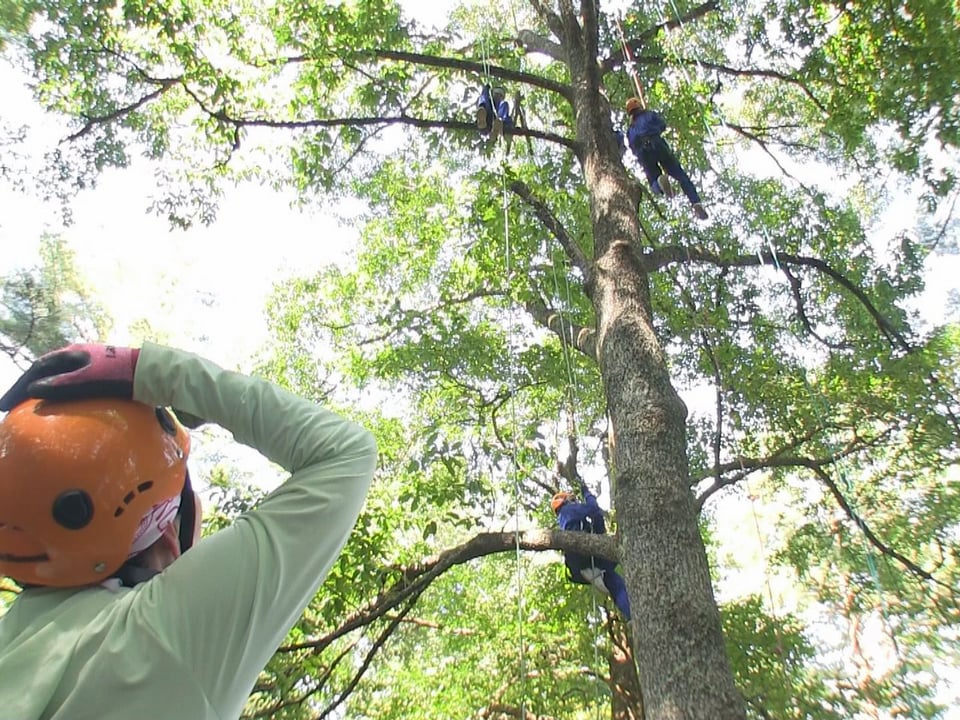 「ツリークライミングクラブ橙」の上田康美代表らに教わりながら、地元の巨木に登っています。