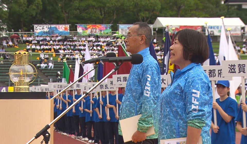 そして、岐阜県の選手団長を務める竹内正康さんとインディアカ競技に出場する林豊子さんが「全国の皆さんと笑顔で健康長寿の輪を広げることを誓います」と選手宣誓を行いました。