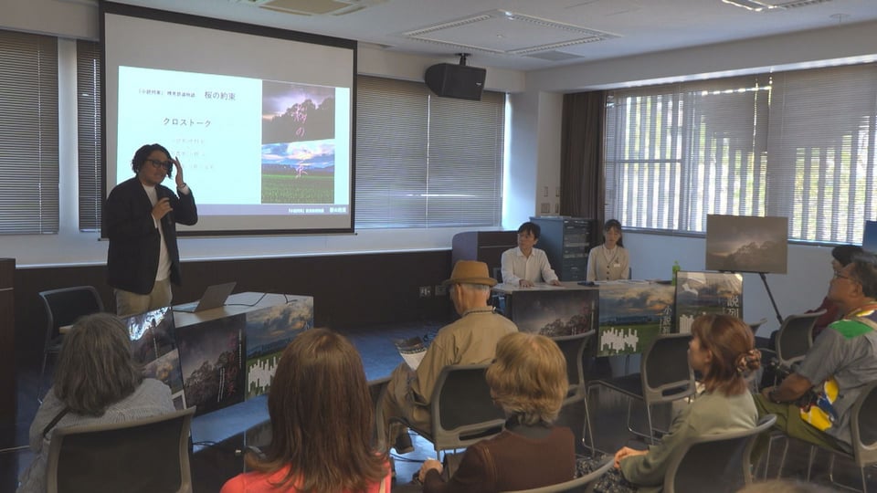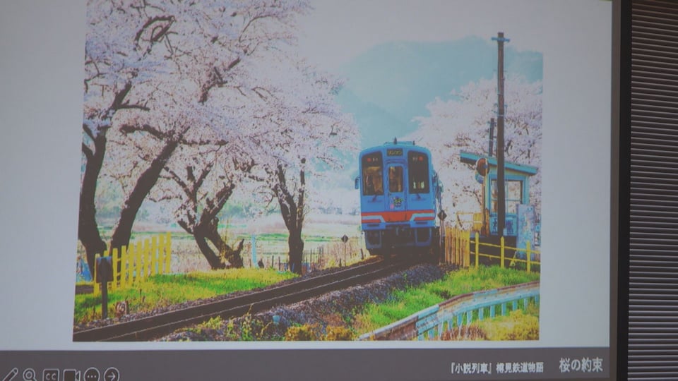 トークショーには、中村さんのほか、小説列車を企画した樽見鉄道の河瀬七留美さん、『桜の約束』の表紙などの写真を撮影した県出身の写真家・小林淳さんが登壇し、企画成立の経緯や小説の制作秘話などを語りました。