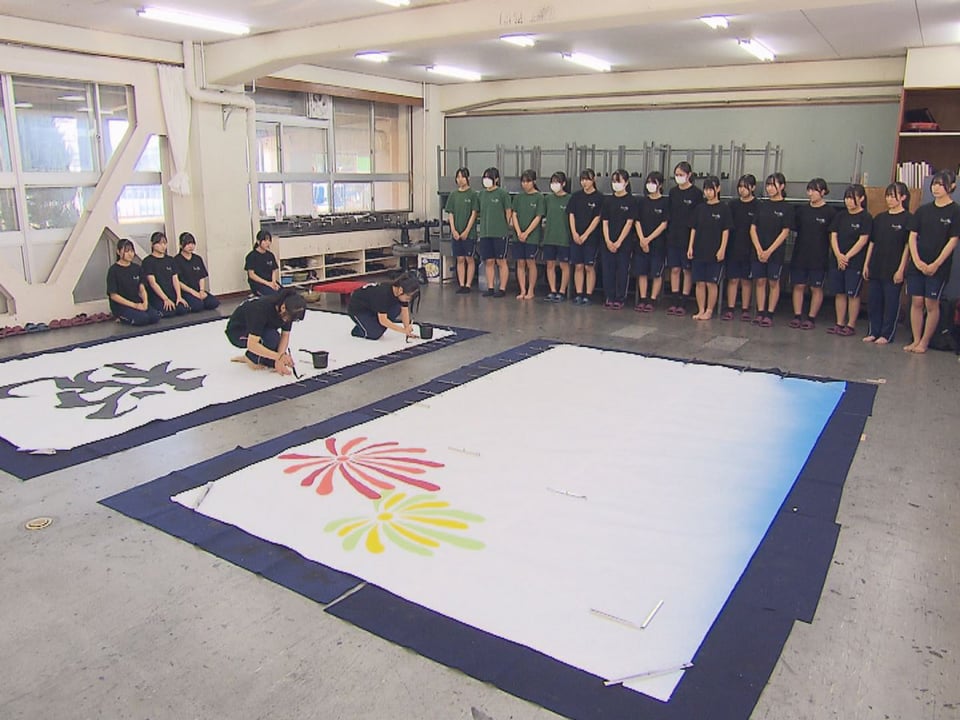 税の大切さアピールする巨大書作品 県岐阜商高書道部 「税を考える週間」を前に制作