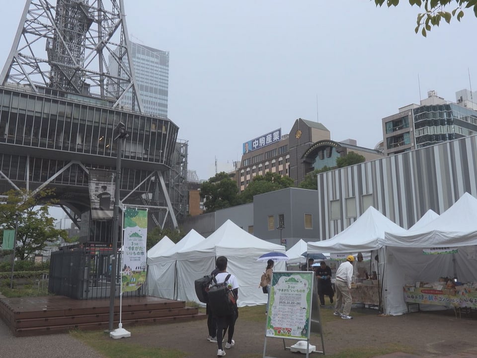 岐阜県の山県市と山形県山形市、長野県山形村は、地域のブランド力の向上などを目指して連携協定を結んでいて、イベントは『3つの“やまがた”いいもの市』と銘打ち、名古屋市のHisaya-odori Parkで2日間にわたって開かれました。