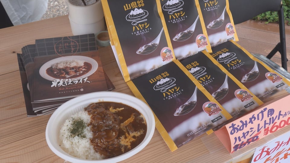 3つの自治体の特産品やグルメのブースが並んだ会場には、山県市から特産の利平栗や、発祥の地として売り出しているハヤシライス、山形県山形市からは郷土料理のいも煮やサクランボの加工品、長野県山形村からはワインやシードルなど、自慢の品々がそろい、大勢の来場客らでにぎわいました。