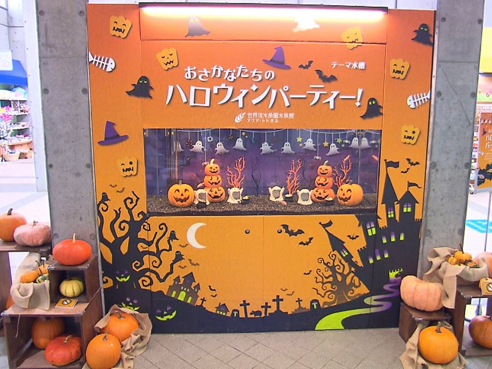 各務原市の水族館でハロウィーンをテーマにした水槽が訪れた人を楽しませています。