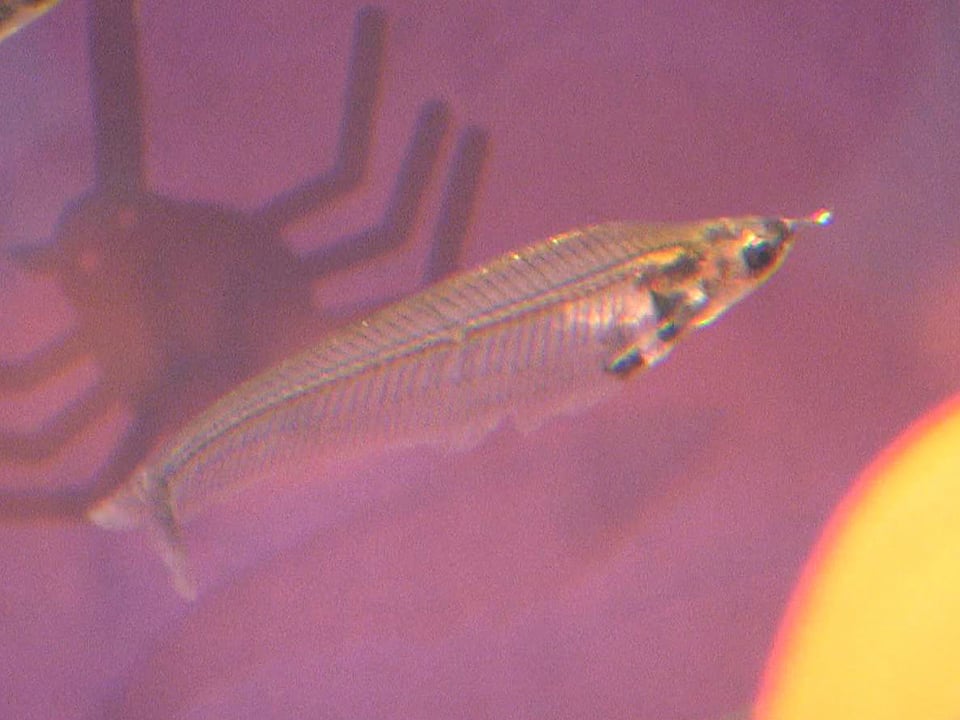 水槽には洞窟に生息し目が退化したといわれるブラインドケーブカラシンや、骨が透けてみえる