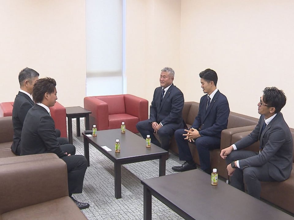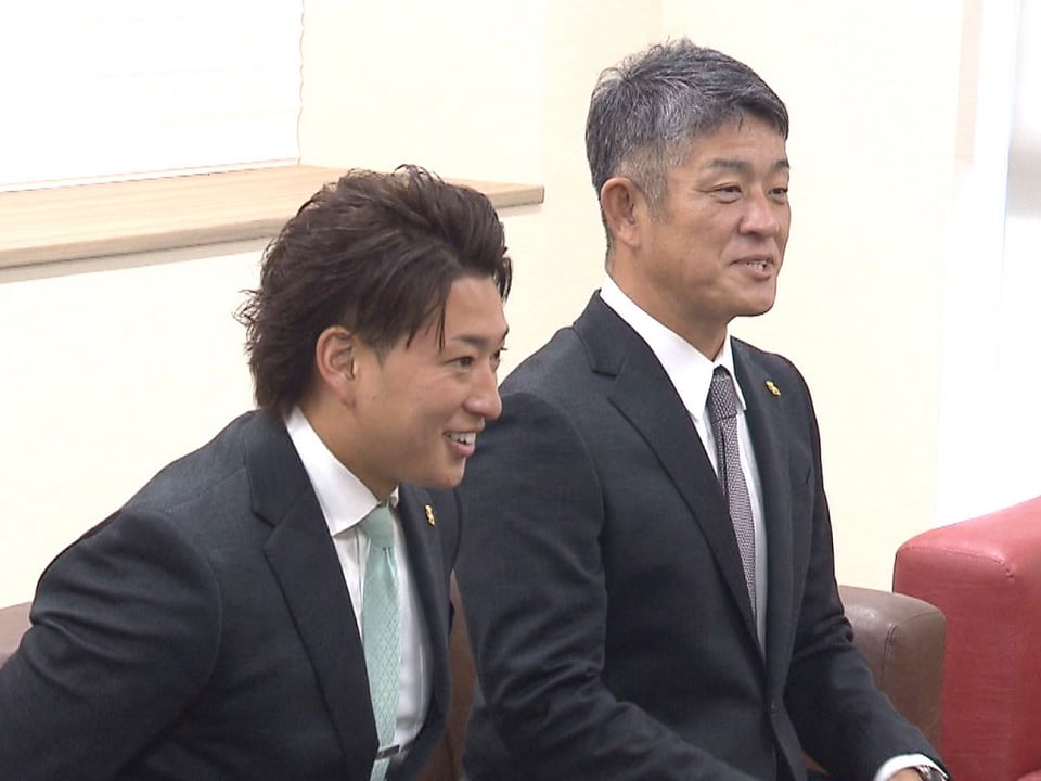 あいさつに訪れたソフトバンクの福山龍太郎アマスカウトチーフは「高い評価をしている。持ち味を存分に生かして開幕一軍を目指して頑張ってほしい」と期待を込め、相良投手は「期待以上の結果を出せるように頑張りたい」と抱負を述べました。