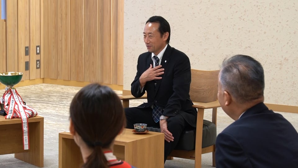 優勝をたたえた江崎知事は「バドミントンは思いのほか激しいスポーツですが、生涯できるスポーツでもあります。ぜひ続けていただきたい」と激励しました。