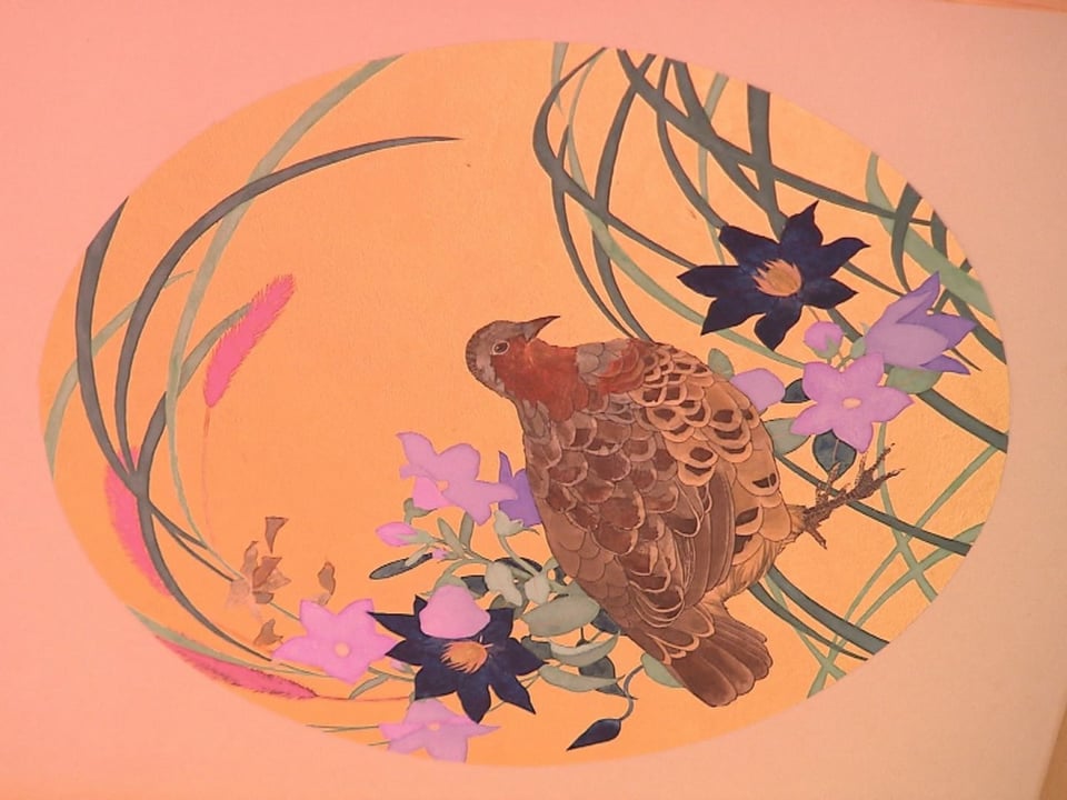 それぞれの絵は、花鳥風月が繊細な筆づかいと豊かな色彩で表現され、格子天井にはめ込まれました。