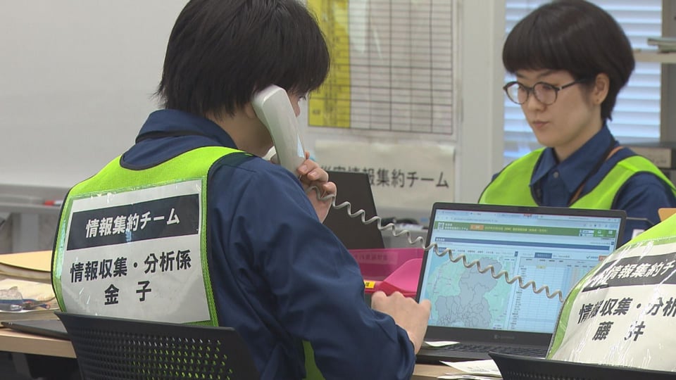 県庁5階の危機管理フロアには対策本部が設置され、県職員や自衛隊員が情報収集に当たったほか、県内5圏域の5つの市町村にもそれぞれ対策本部が設置され、合わせて230人余りが訓練に臨みました。
