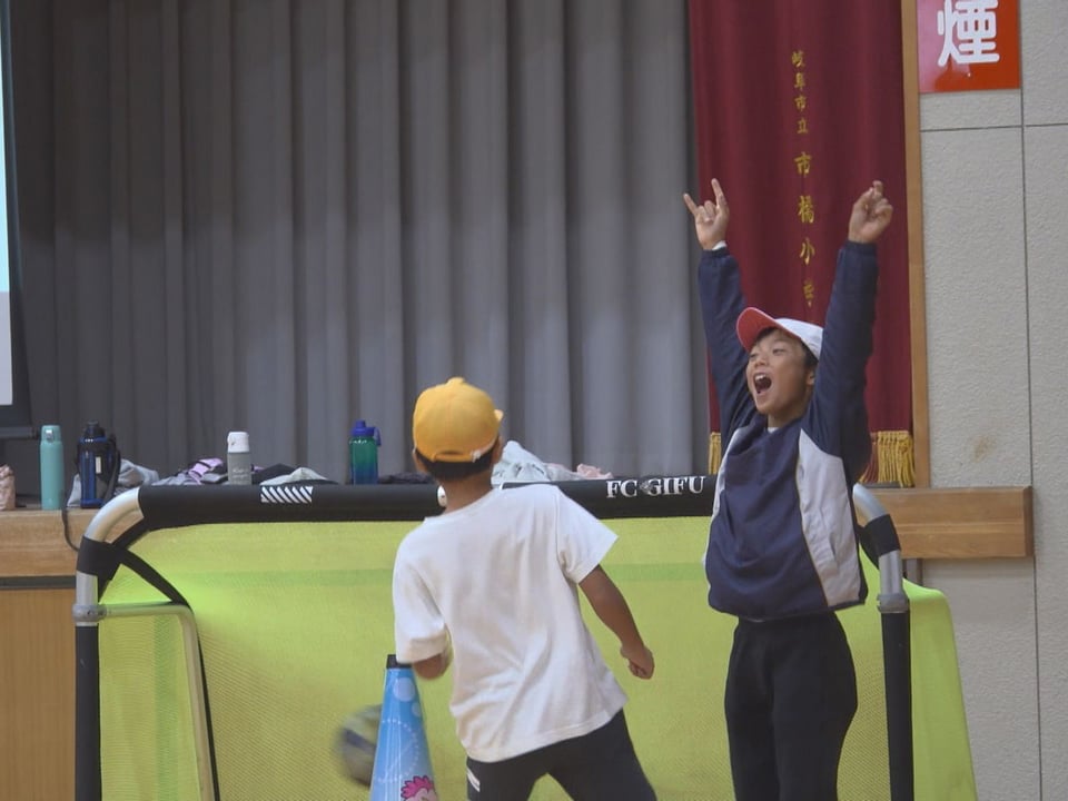 子どもたちに楽しく防災について学んでもらおうと、岐阜市の小学校で31日、ゲームやクイズを取り入れたサッカーの出前教室が開かれました。