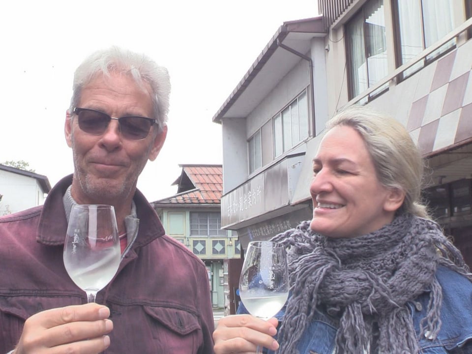掛け替えが終わると、蔵人らが歌う地元の祝い唄が響く中、出来上がったばかりの新酒が観光客らに振る舞われました。