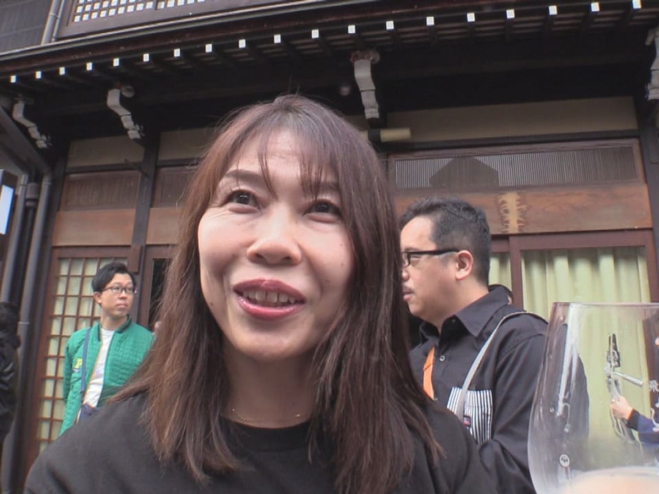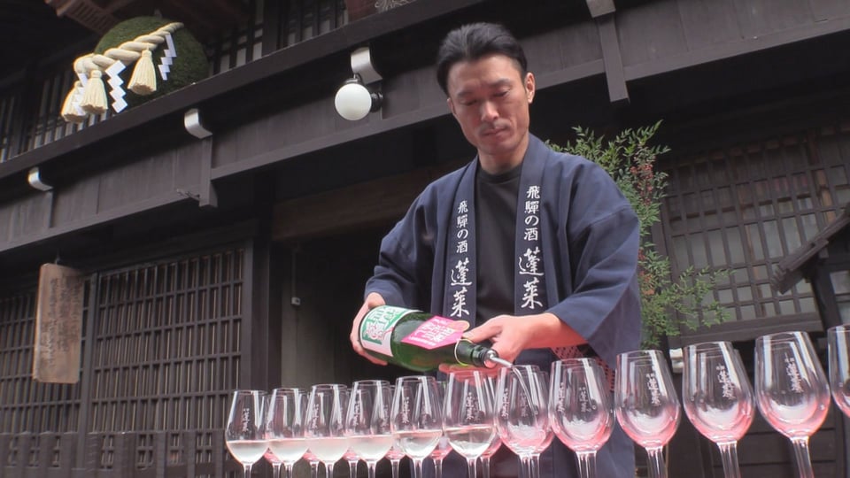 飛騨市の造り酒屋で1日、新酒ができたことを知らせる杉玉の掛け替えが行われ、訪れた観光客らに搾りたての新酒が振る舞われました。