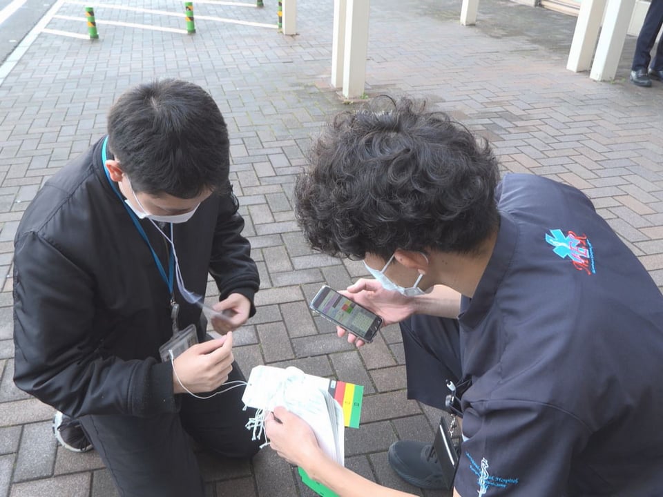 災害時には迅速な情報伝達が求められるため、今回の訓練では、病院が独自開発したアプリ「災害掲示板」が初めて運用され、スマートフォンを使って、トリアージした患者の情報をリアルタイムで共有する流れを確認しました。