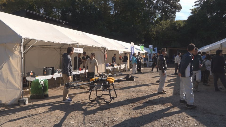 また、苗木などの資材を山に運ぶ林業専用ドローンや、「ハーベスタ」と呼ばれる木を切り倒し一定間隔で切りそろえるまで一連で行う重機の実演が行われ、来場者の関心を集めていました。