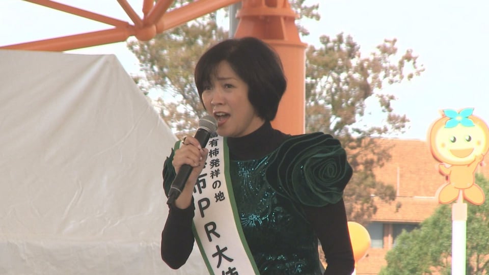 このほか、会場内には市内の企業や団体、飲食店など約50のブースが並び、富有柿の皮むき大会やサボテンをかけたじゃんけん大会なども行われ、多くの人でにぎわいました。