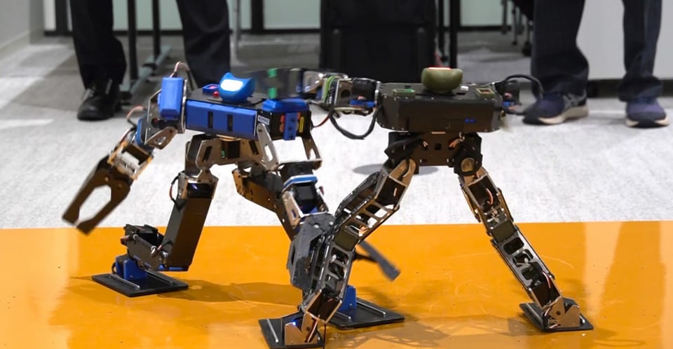 競技は、ロボット同士の相撲のようなルールで、1対1の対戦で相手を先に3回倒せば勝ちです。