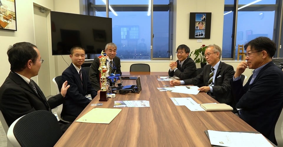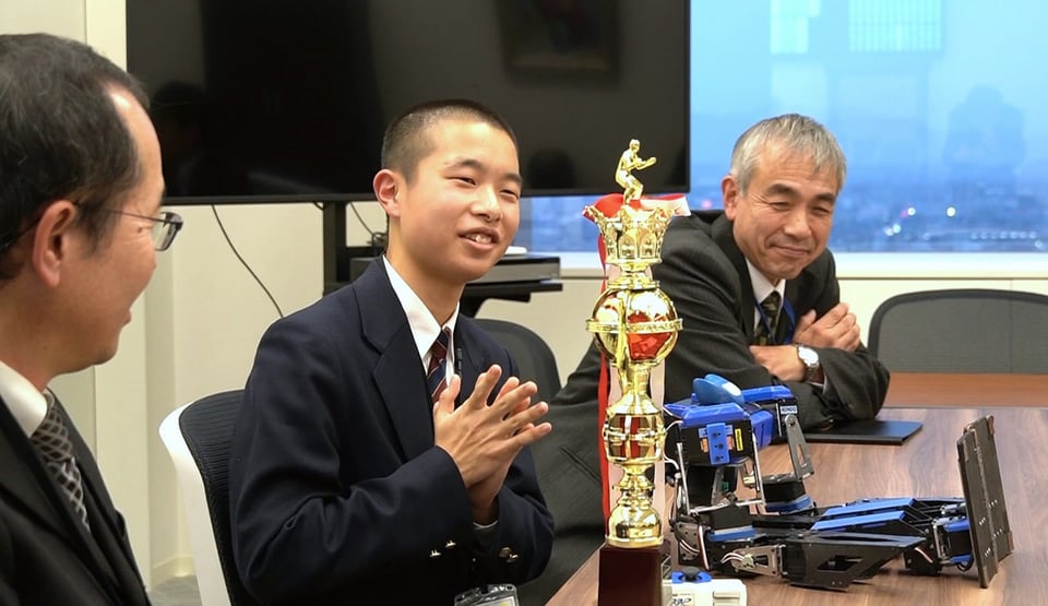 堀貴雄教育長に入賞を報告した田中さんは「本当は優勝したかった。これまでの活動を通してロボットの制御や人工知能(AI)に興味を持ったので、大学に進んで もっと専門的に学んでいきたい」とロボット製作への思いを語りました。