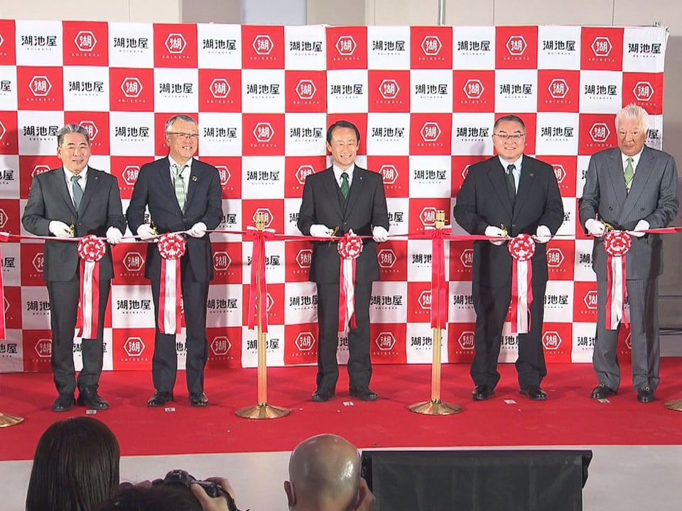総合スナックメーカー、湖池屋の新たな工場が海津市に完成し、テレビCMに出演している 俳優の中島健人さんらが出席して記念式典が行われました。