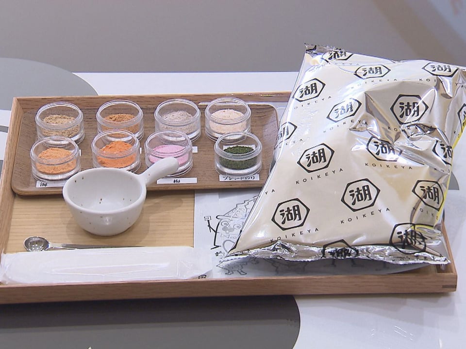 2人は湖池屋GOGO!ファクトリーの目玉、マイポテチ作りを体験し、お互いをイメージしたオリジナルフレーバーのポテトチップスを作り、それぞれの味を確かめ合っていました。