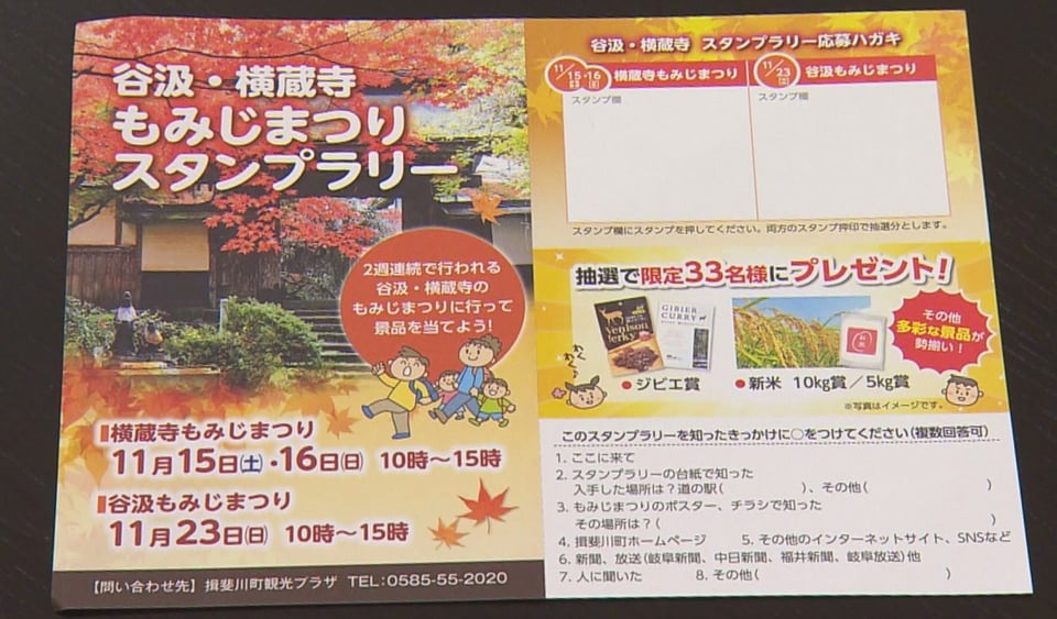 一方、谷汲山華厳寺一帯で開かれる谷汲もみじまつりは23日に開催され、谷汲踊の上演や餅まき、地元の物産品やグルメが楽しめるふれ愛市などが開かれます。