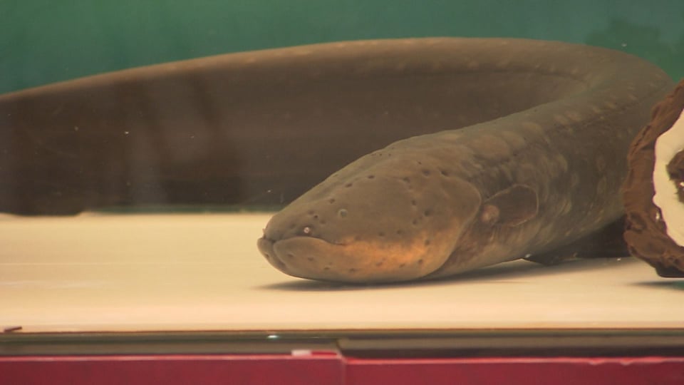 「アクア・トトぎふ」の学芸員によりますと、デンキウナギは全長約1メートルで、体の約80%が発電器官になっているということです。一般家庭の電圧は約100ボルトですが、デンキウナギの電圧は約600ボルトに達するということです。