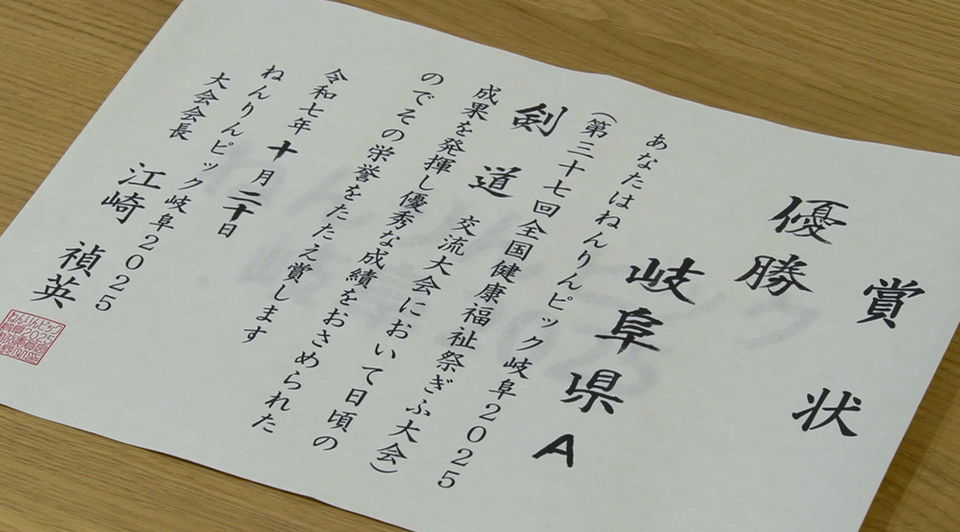 10月に岐阜県で開催された「ねんりんピック」の剣道の大会で、上位を独占した岐阜県チームの選手らが県庁を訪れて、知事に大会での好成績を報告しました。