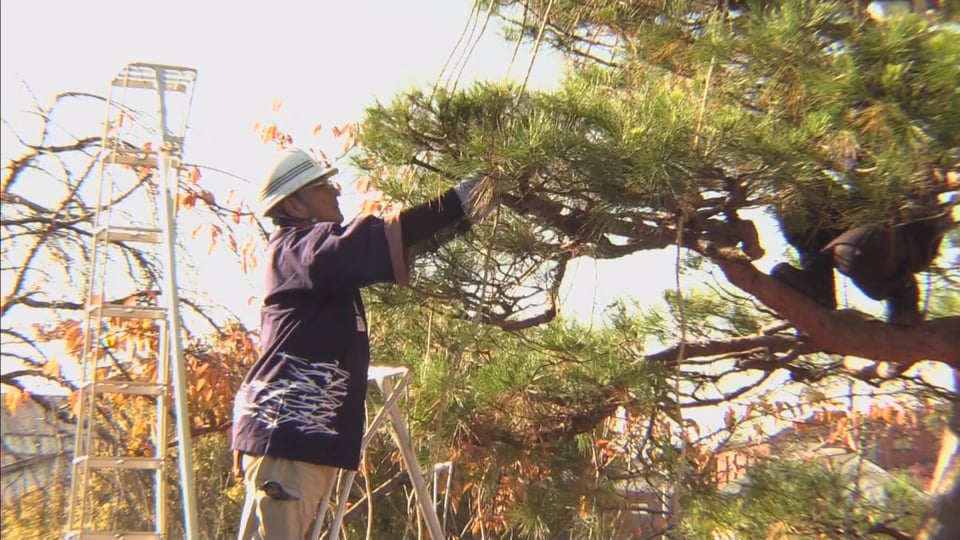 本格的な雪のシーズンを前に、冬の風物詩「松の雪吊り」作業が17日、高山市で始まりました。