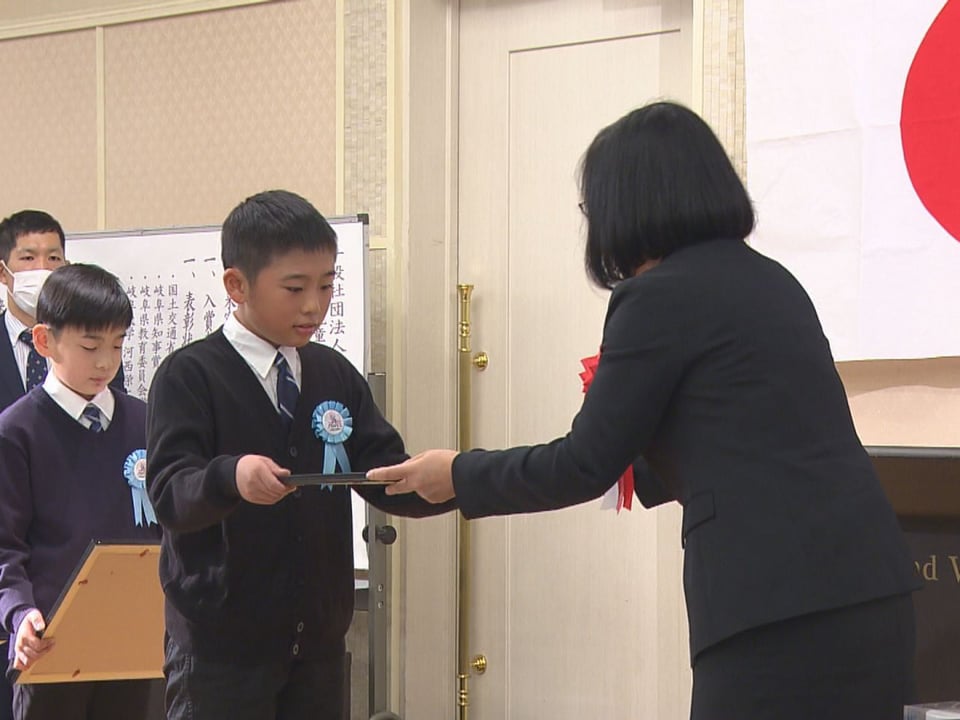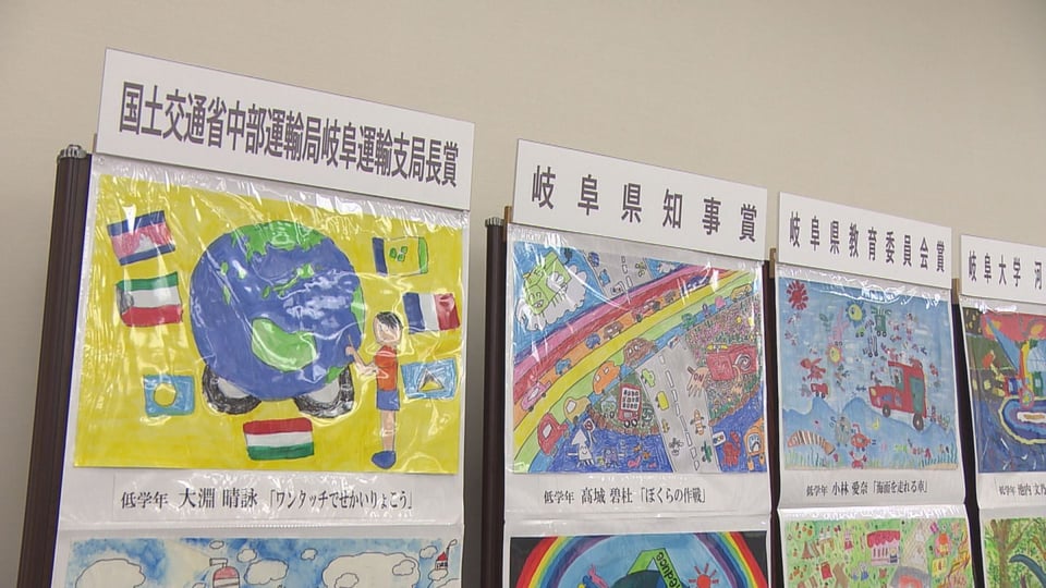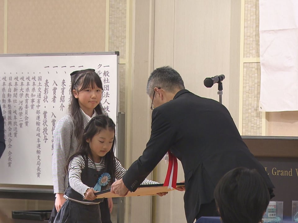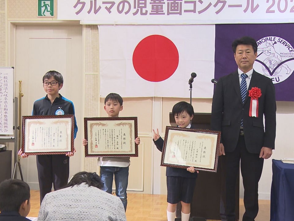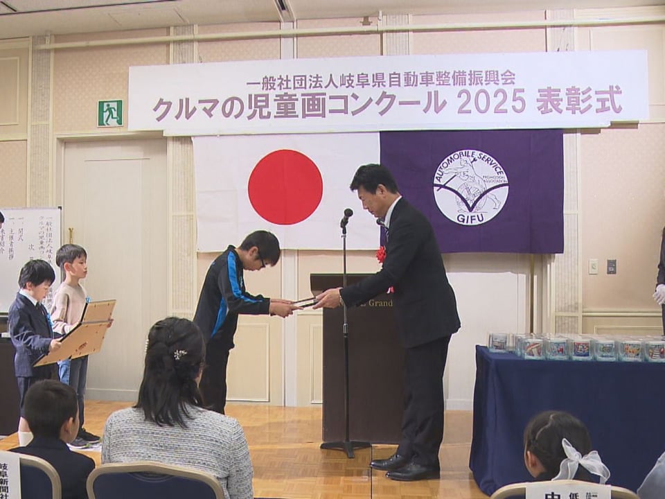 岐阜県内の小学生が車をテーマに描いた「クルマの児童画コンクール」の表彰式が、16日、岐阜市で開かれました。