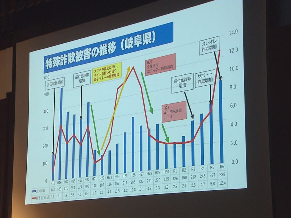 県警によりますと、10月末までの特殊詐欺の被害額は 去年の同じ時期に比べて5億円余り多い約12億9000万円に上り、特に若い世代の被害が増えているということです。