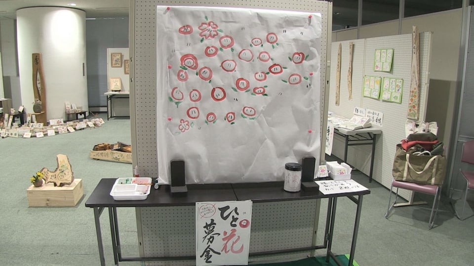 会場では、ツバキの花を描いて募金する「ひと花募金」も行っていて、加藤さんの作品の売り上げの一部などと合わせて、能登半島地震の被災地支援に充てられます。
