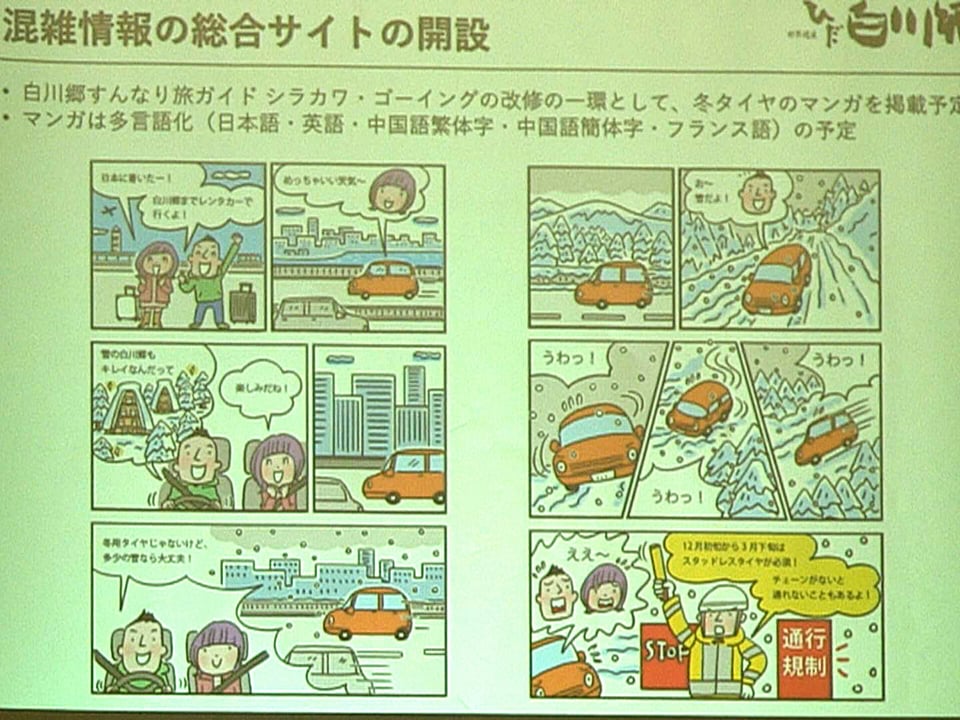 冬の飛騨地方を訪れる観光客がノーマルタイヤのレンタカーで交通障害を引き起こす問題を受け、対策会議が初めて岐阜県大野郡白川村で開かれました。
