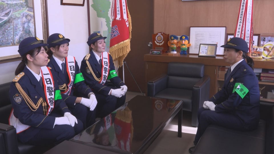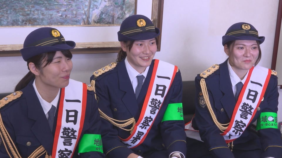 一日署長に委嘱されたのは山本裕香選手、皆川莉乃選手、那須彩香選手の3人で、制服姿で委嘱式に臨み、西田美乃里署長から委嘱状を受け取りました。