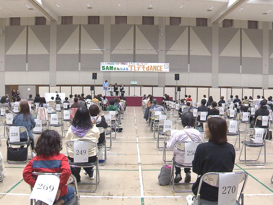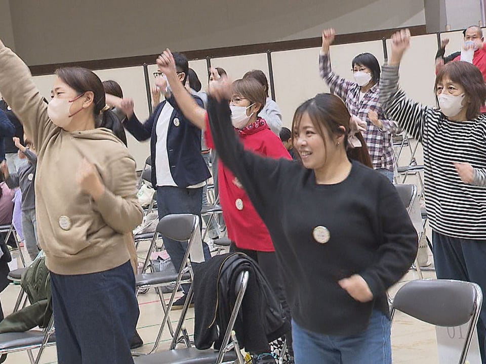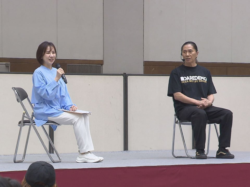 続いて、健康寿命の伸長を目指して幅広い世代にダンスに親しんでもらおうとSAMさんが考案した『ダレデモダンス』を市民らにレクチャーし、「誰もが無理なく踊ることができる。振り付けを思い出すことで頭もフル回転できる」と話していました。
