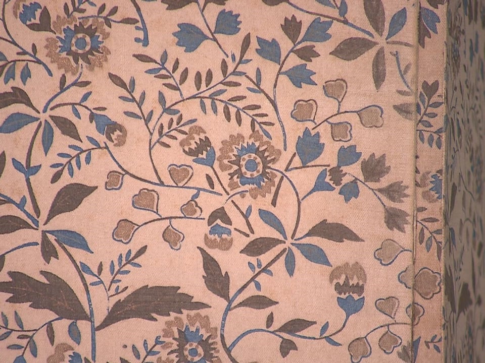 「こちらは大正期の日本画なのですが、裏側には日本の草花が西洋風にデザインされ、当時の先端を行くおしゃれさが垣間見えます」