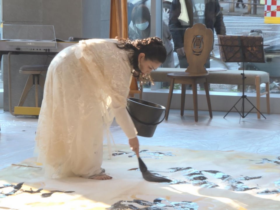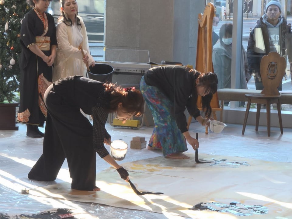 岐阜を拠点に国内外で活躍する書道家、河口瑛泉さんら女性書道家6人による書道パフォーマンスが岐阜市で開かれました。