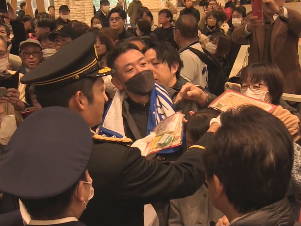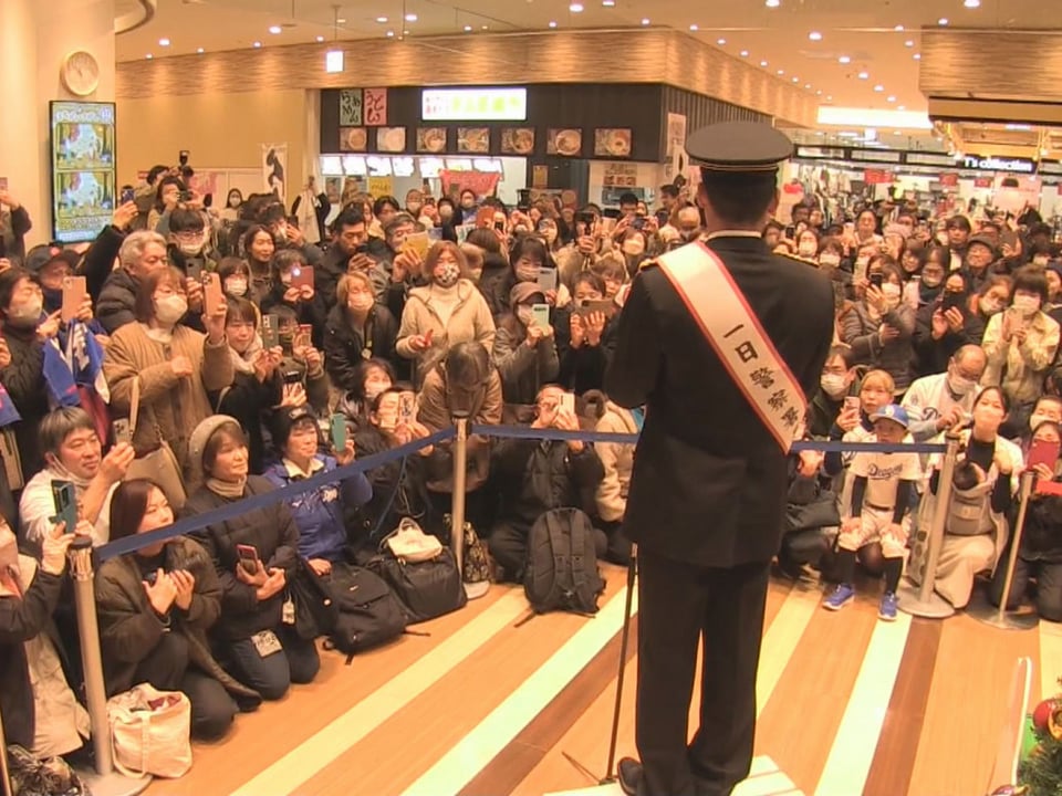 続いて、市内の商業施設を訪れ、詰めかけた大勢のファンや地域住民の声援に応じながら交通事故や特殊詐欺被害の防止などを呼びかけ、啓発チラシやグッズを手渡していました。