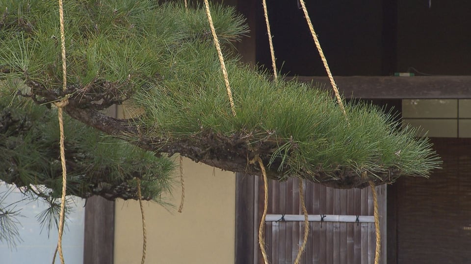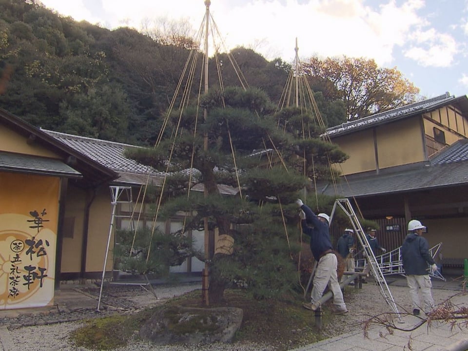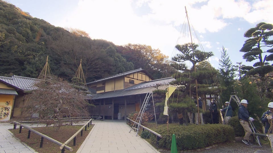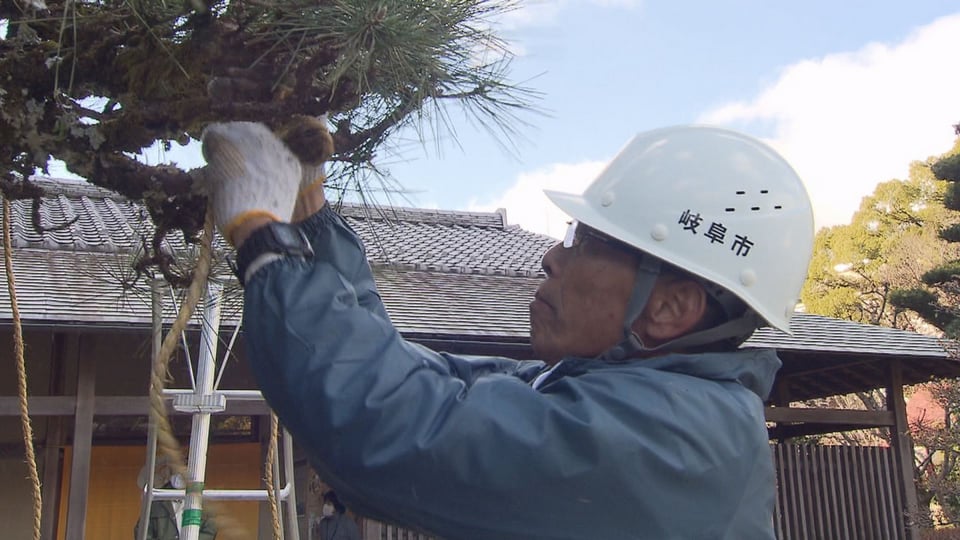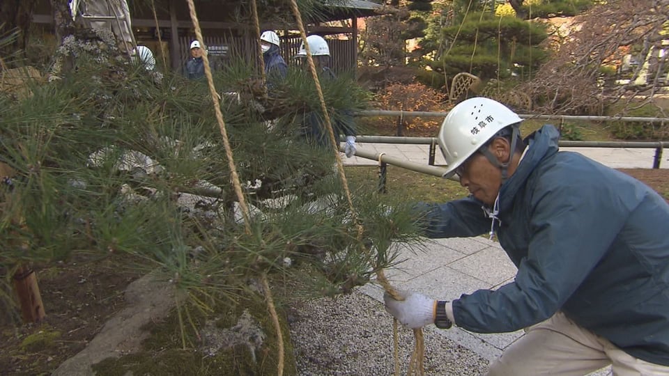 本格的な雪のシーズンを前に、冬の風物詩「松の雪吊り」作業が12日、岐阜市の岐阜公園で行われました。