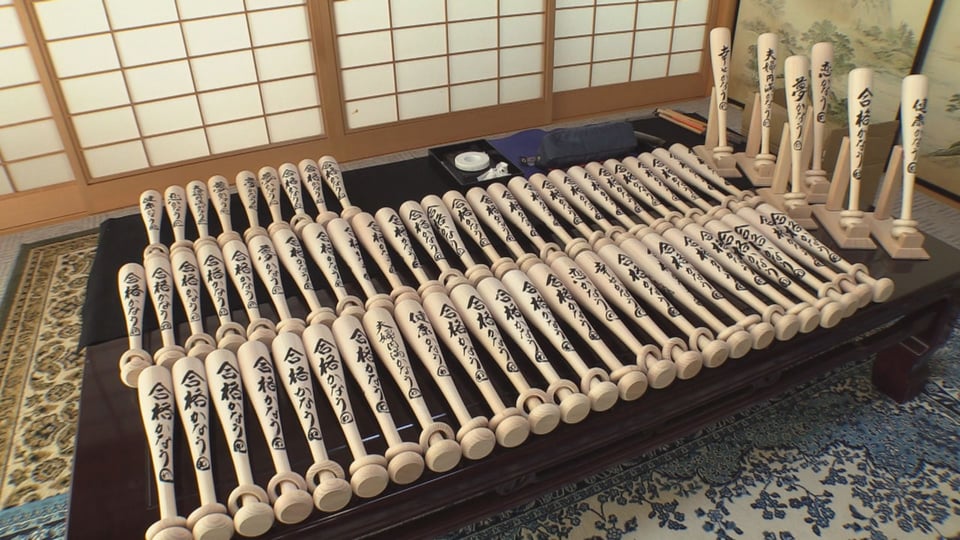 - 受験シーズン前に一筆入魂 「かなうわバット」に文字入れ 岐阜県下呂市