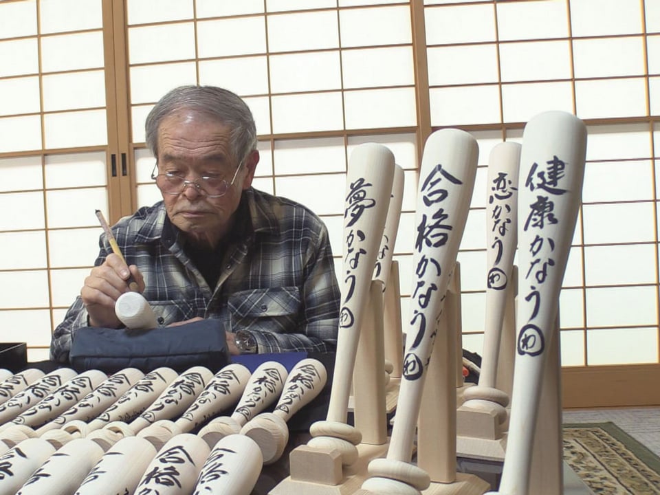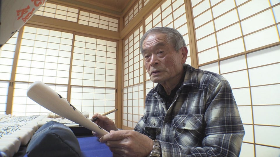 このバットの発案者で書道師範でもある河原良昭さん(80)は、2001年の発売開始からこれまで、約3万8800本のバットの文字入れ作業を一人で担っています。