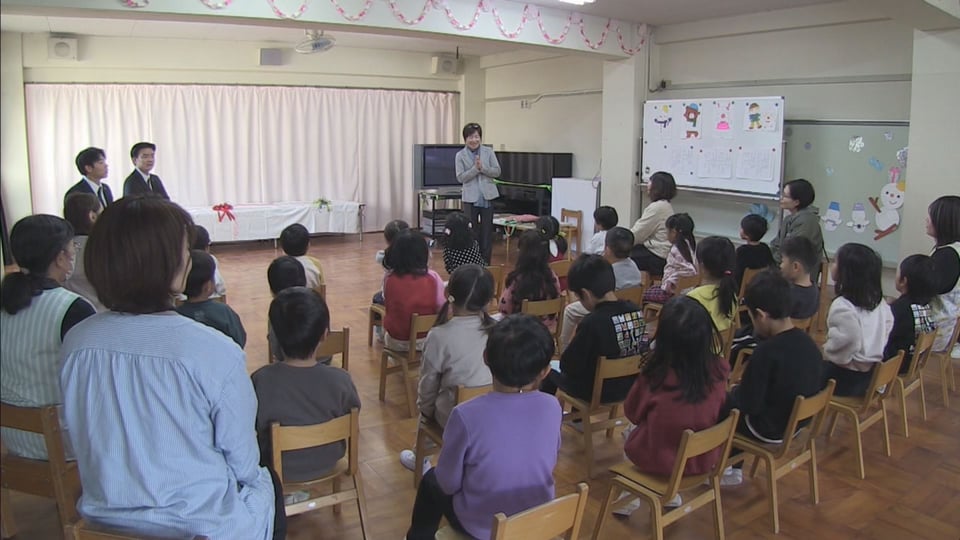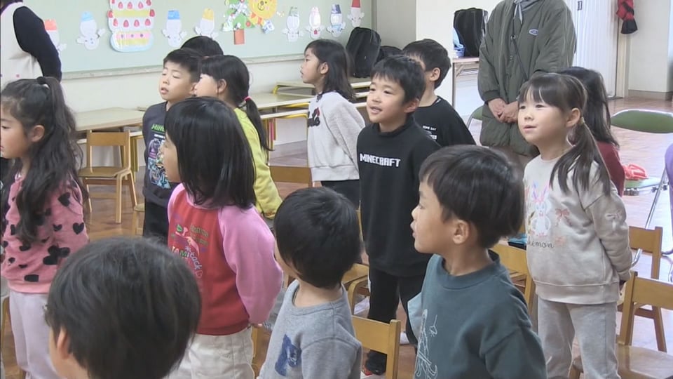 贈呈式では、三基商事の東海北陸エリアリーダーの武井裕士さんや地元代理店の鈴木孝子さんらが「みんなでたくさん本を読んでね」と声をかけながら絵本を手渡し、園児らはお礼にクリスマスソングの合唱を披露しました。