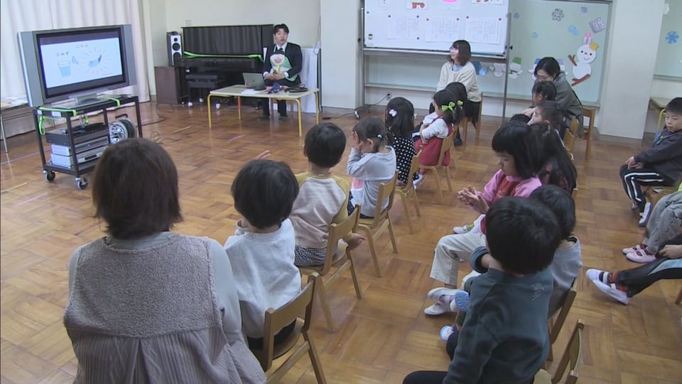 また、ミキプルーン総合研究所が監修した課外授業「うんちのはなし」も行われ、園児らは健康のバロメーターである便の役割や、バランスの良い食事の大切さなどを楽しく学びました。