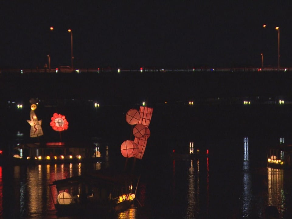 冬至の22日、行灯を乗せた船を長良川に浮かべ、ゆく年を振り返る岐阜市の冬の風物詩「こよみのよぶね」が行われました。