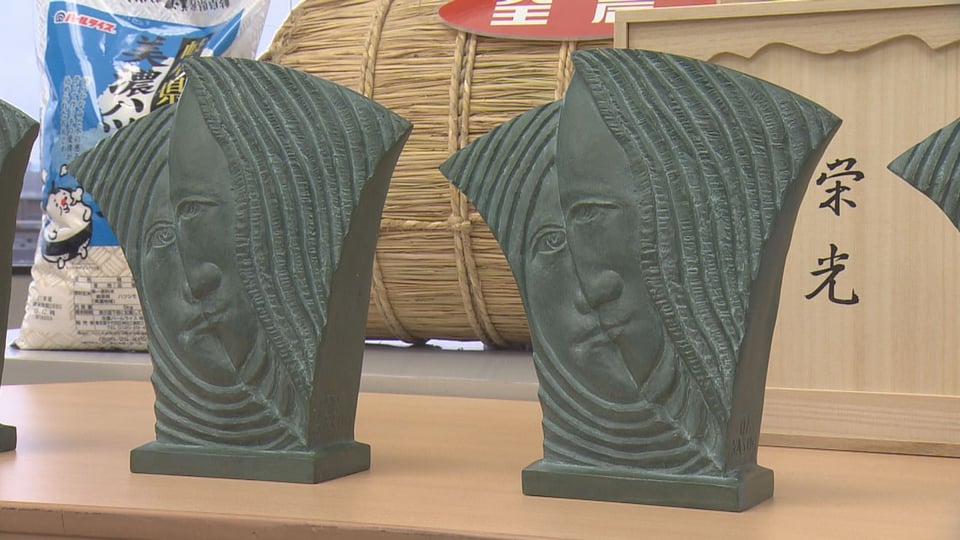 贈呈式で、岐阜新聞社の矢島薫長からブロンズ像「栄光」が贈られました。